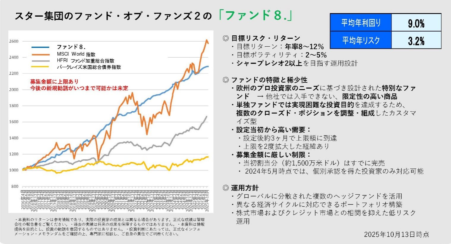 欧州の機関投資家がオーダーした希少性のある7本のファンドからなる長期安定成長型のファンドです。上限枠がございます。