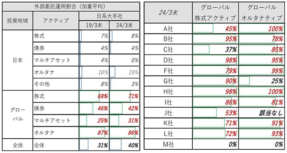 図表5:日系大手社のアセットクラス毎の運用受託残高に占める外部委託運用の割合